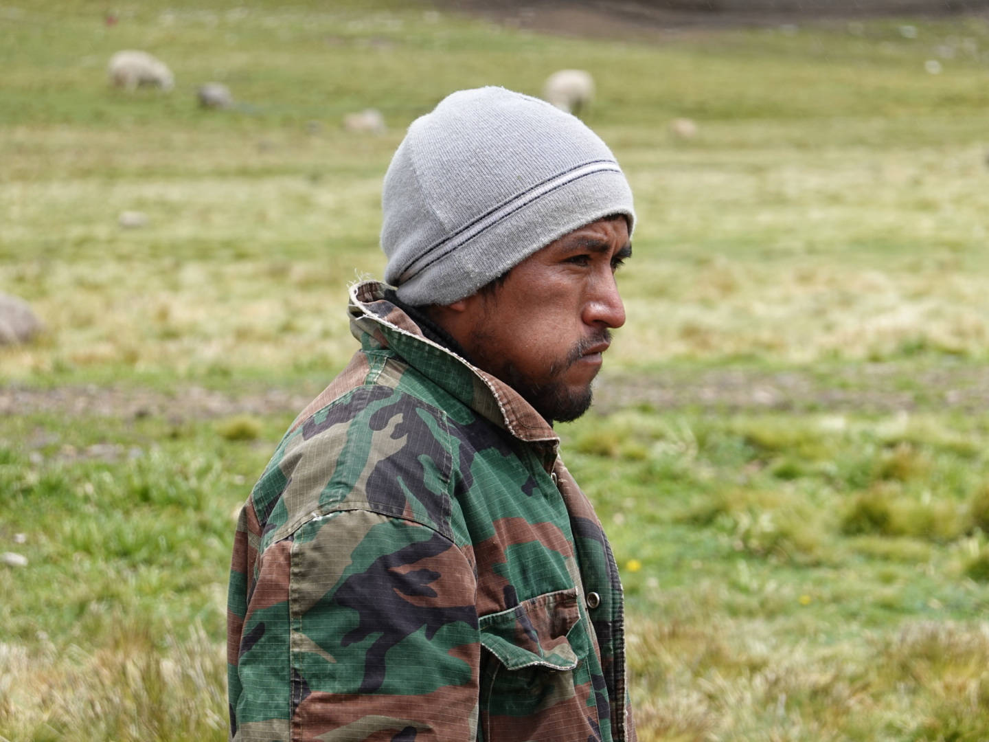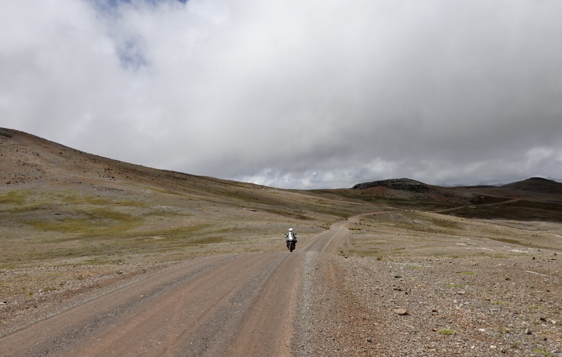 Interestingly, we found ourselves making better time. While plenty of ups and downs and twists and turns, the road also featured long, relatively straight sections, which allowed us to achieve a higher average speed. In the extended stretches at or above 15,000 feet, we observed a different landscape than we’ve seen thus far… more stark and barren, but no less beautiful. We also encountered several herders/shepherds, all of whom matched the landscape with their stoicism. The following is a how Claudio expressed his observation of the landscape to a friend or his…