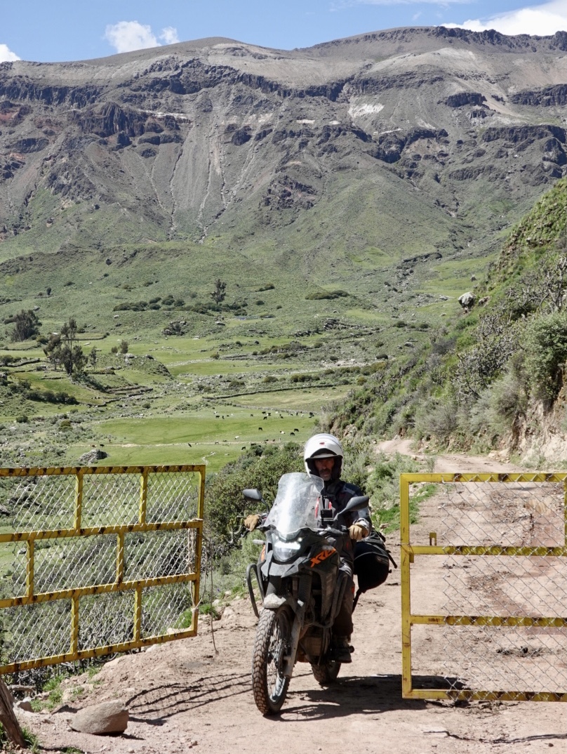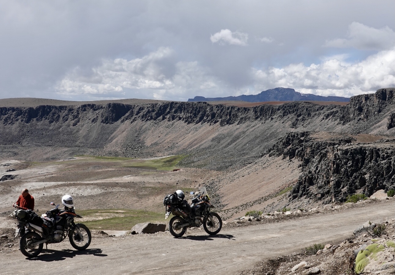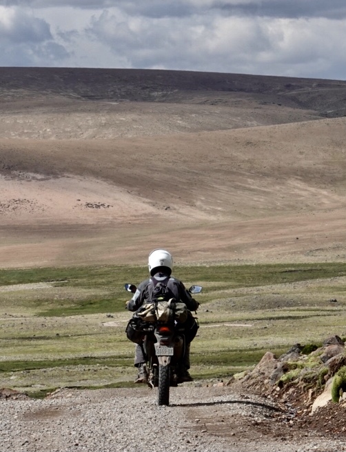 As we crested at the high point, we stopped for a break. Since starting the climb from Oyulo, some 90 minutes earlier, we hadn’t spoken to one another. Interestingly, we discovered that the nature of the riding and the remoteness of the landscape had created in both of us a sense of solitude together with a certain wariness. Like any risky endeavor, with motorcycling you’re always cognizant of the risks, but typically when you are in the act of riding, you put them aside. Now, we found ourselves pre-occupied with the consequences of making a mistake. Maybe it’s our age… I’m 61 and Claudio is about to turn 60 (in a week!!), but this seemed somehow more than that and what was strange was that without talking about it we had both found ourselves in a similar space. When in doubt though, the best thing to do is to just get on with it and so we did.
