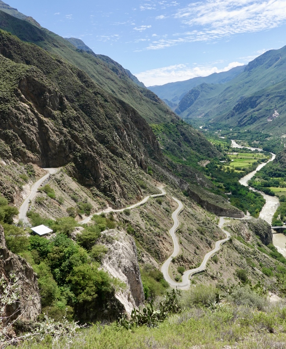 The next and final chapter to our day was arriving another 90 minutes later at the precipice of the Cotahuasi Canyon. From where we stood overlooking the canyon it was close to 6,000 feet down to the Rio Pampa Marca river, which is the equivalent of the deepest part of the Grand Canyon. (Based on what I read there is a point further upstream where the Cotahuasi Canyon is over 11,000 feet deep, but that will have to wait for my next lifetime). Remember that sense of wariness I commented on from a few hours earlier, it was back with a vengeance as we made our way down the series of switchbacks on loose dirt. Fortunately about half way down, as the switchbacks got tighter and more frequent, we passed a water truck, which had ‘watered’ down the road and so from that point onward the traction improved significantly. By the time we reached Cotahuasi at around 5:00, we were fully spent. We were lucky enough to out find a beautiful spot to stay, aptly named “Hotel Vallehermosa” and were both asleep after a filling meal by 8:30.