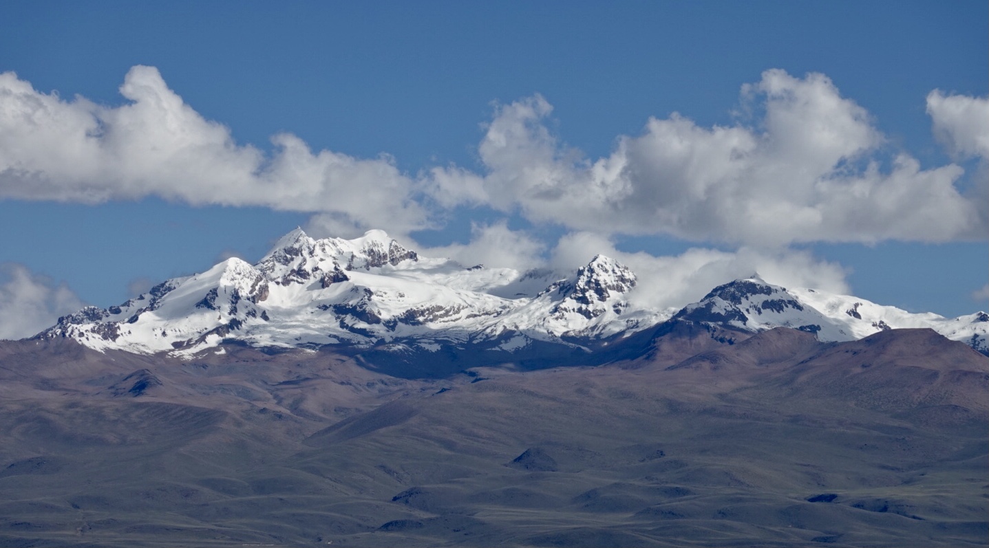 At the the town of Oyulo, things changed dramatically. The road turned to dirt and we started climbing steeply… initially up to around 12,500 feet and then to our high point for the day at 15,899 feet. The final ascent was as steep and challenging as anything we’ve done so far. At the top we emerged onto a plateau where we spent the next 90 minutes hovering around 15,000 feet riding across a desolate, but at the same time breathtaking landscape.